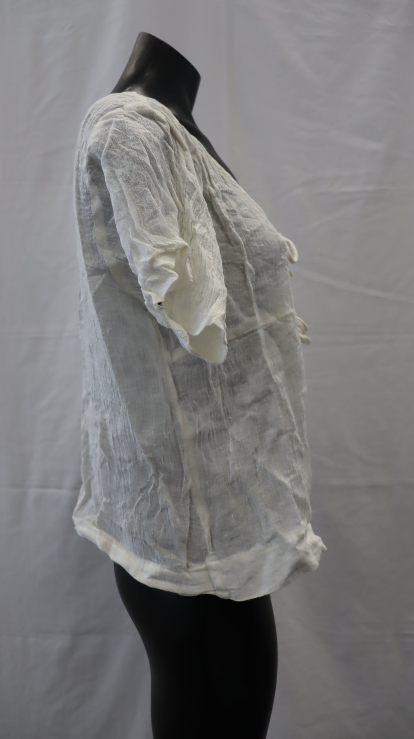 The Robin Tie Top in Crinkle Linen is made from 100% linen crinkle fabrication. It is a semi sheer naturally light fabrication that softens with each wash, is antibacterial, durable and breathable.