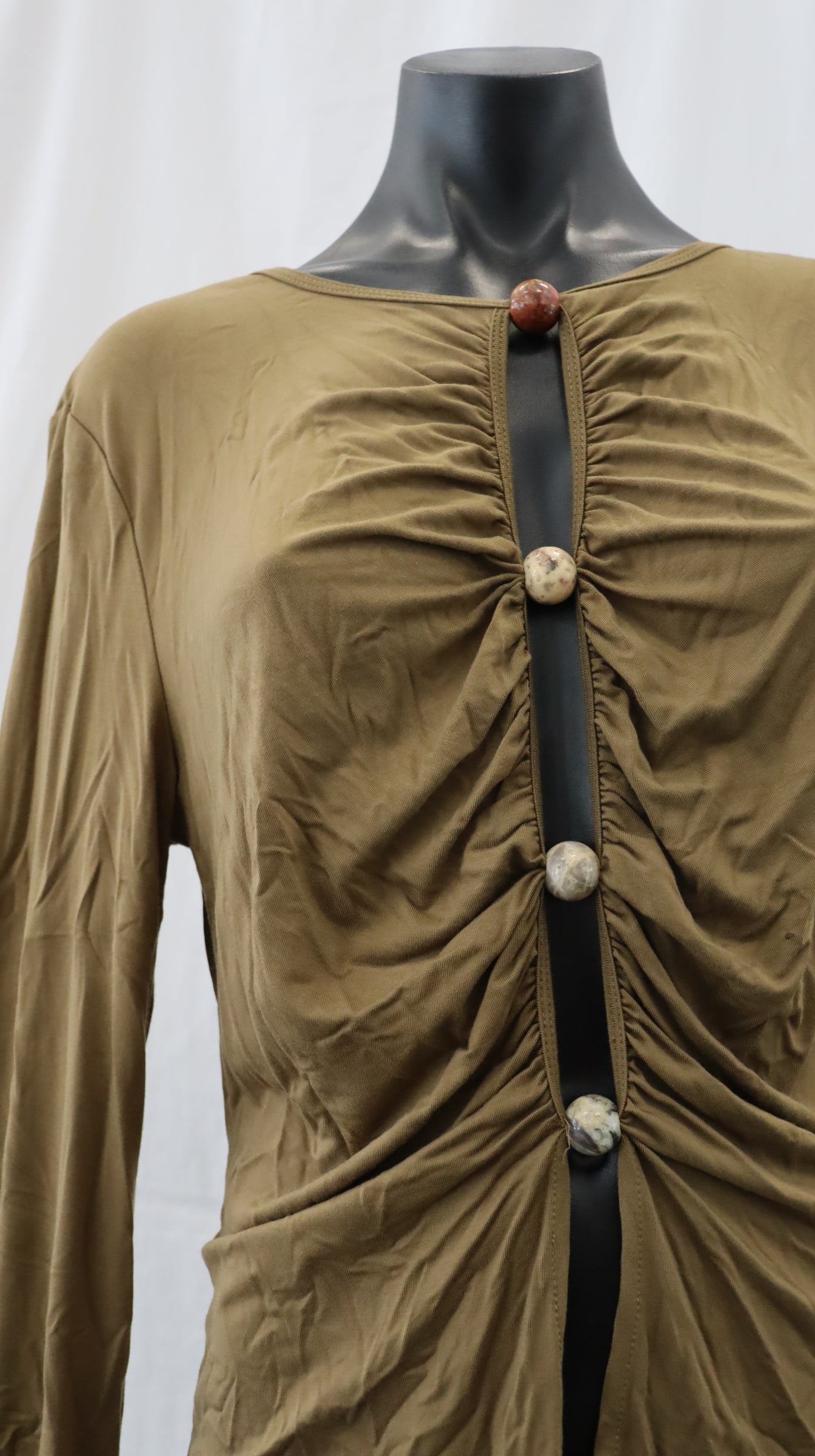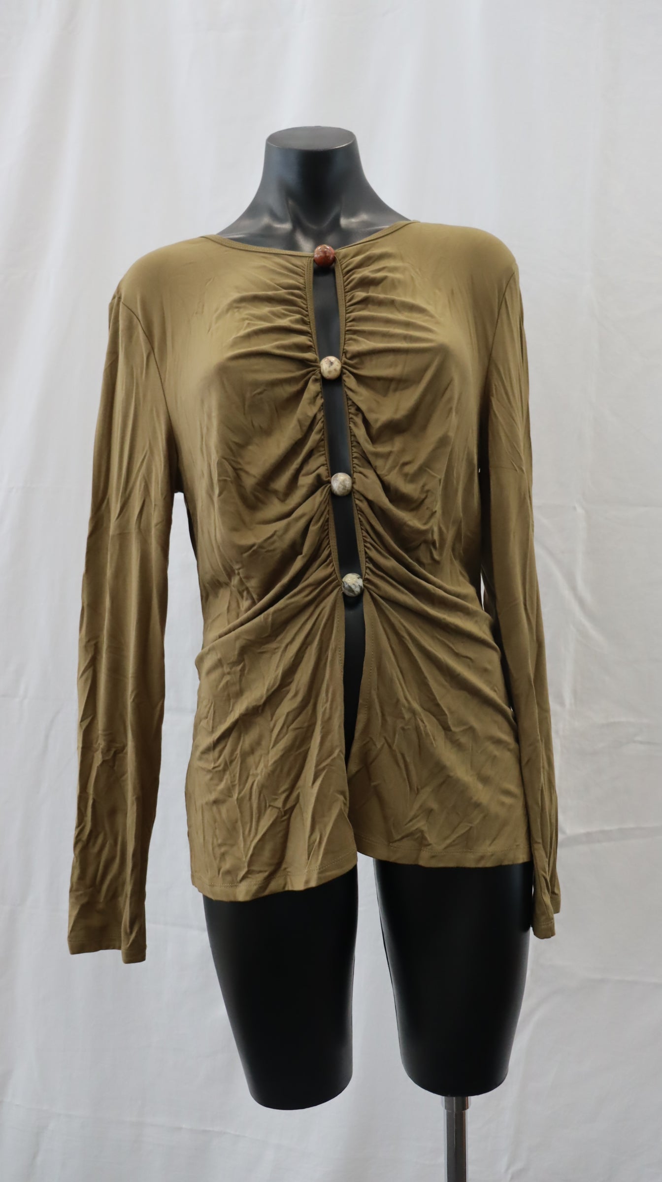 Elevate your wardrobe with the Hidden Gem LS Top and add a touch of allure and refinement to a staple piece. This top is crafted from 92% bamboo and 8% spandex, offering a light-weight, soft-touch stretch fabrication that provides a level of comfort beyond compare. Adorned with organic custom-cut stones in a mesmerising marble effect, each piece is unique, showcasing the beauty of organic materials. The centre cut-out keyhole features and gathering detailing at keyholes add a touch of seduction and refinement to this versatile piece.