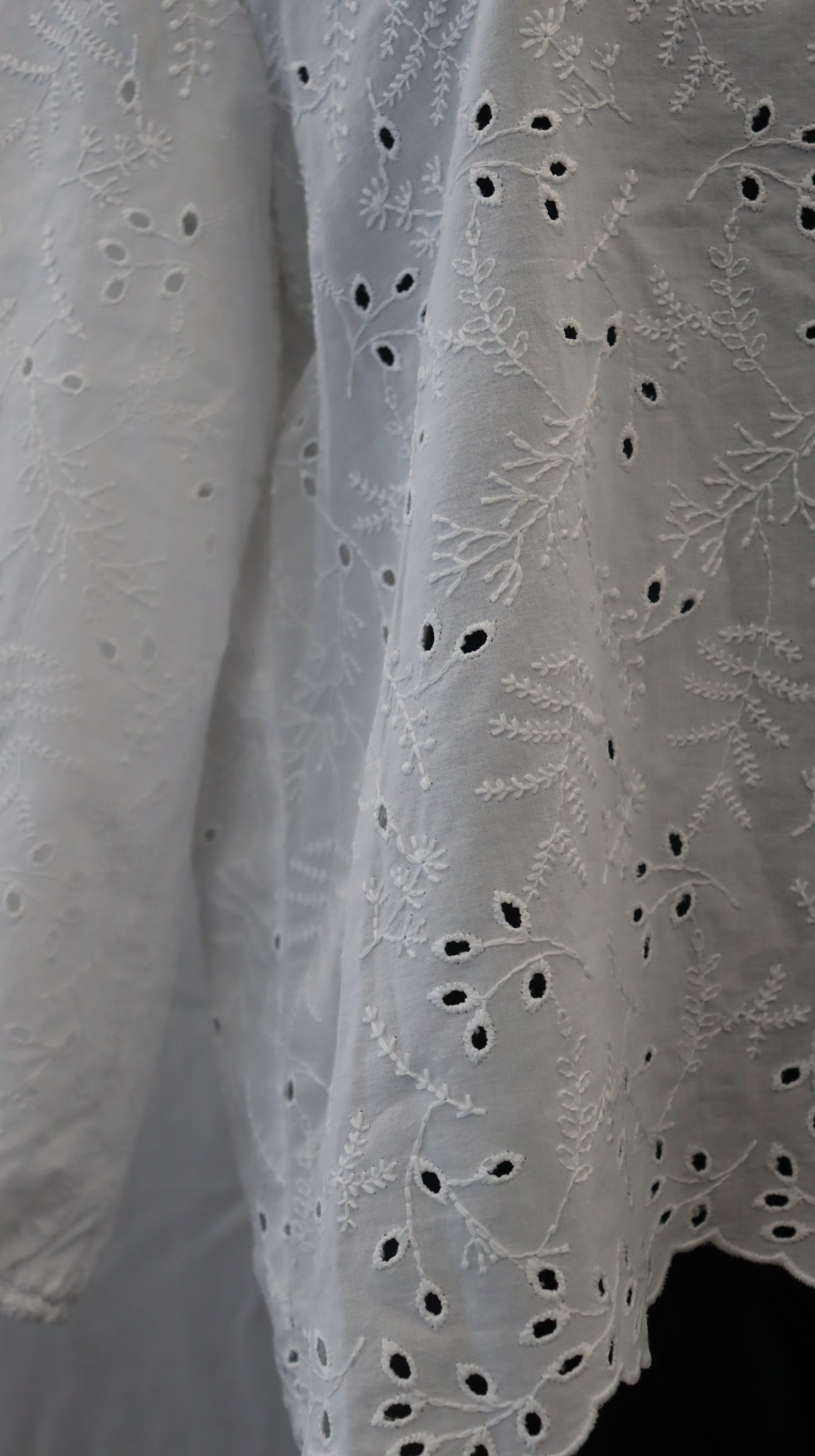 Round neck, 3/4 sleeve semi sheer, embroidered leaf pattern